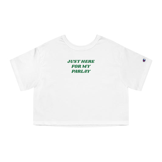 CHAMPION X JUST HERE FOR MY PARLAY CROPPED TEE