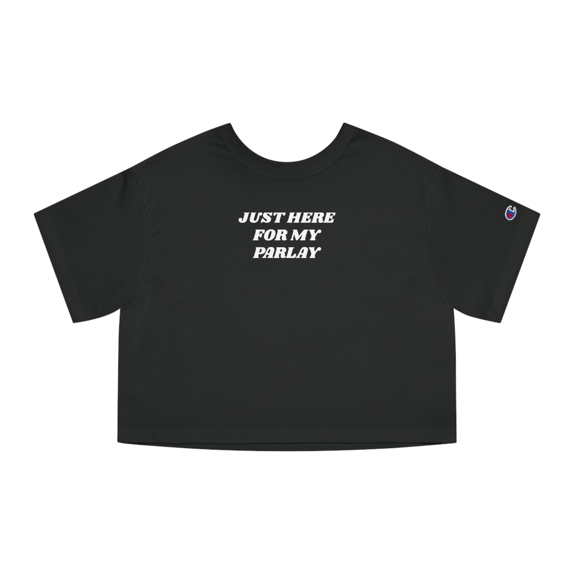 CHAMPION X JUST HERE FOR MY PARLAY WOMENS CROPPED TEE